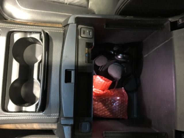 - Console, floor with storage area, cup holders